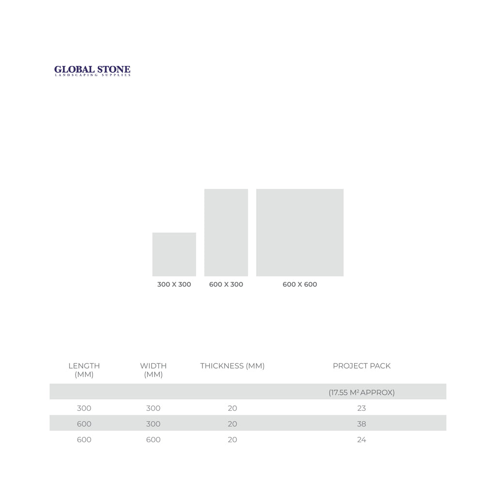 Calibrated products are subject to a minimum of +/-3mm variation. Due to the composition of natural stone, colour variations may occur after installation.