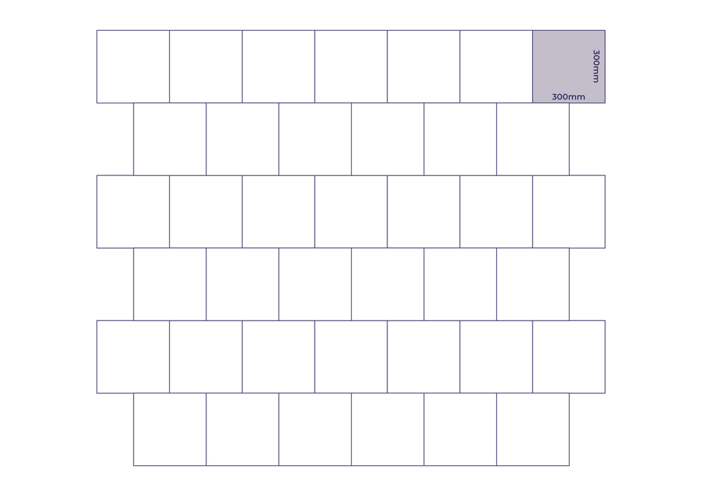 It is essential that each tile is tapped down to ensure as much of the tile as possible comes into contact with the mortar. When laying your project, ensure that you mix tiles to achieve an overall blended appearance. While the finishes of porcelain have less surface variation than natural stone, they are still designed with a level of variation to add a range of texture to their surface. If within the selection of tiles you encounter any repeat patterns, we suggest that you rotate slabs 90/180 degrees in order to minimise the appearance of repetition (this may be more prevalent in tiles which have a more extensive surface pattern. Don’t half bond porcelain tiles over 600mm long. We recommend maximum one third/two thirds bond for tiles over 600mm.